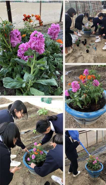 生徒の保護者の方に寄付していただいた花でフラワーアレンジメントに挑戦しました。今年は毛虫が多いので、野菜だけでなく花も育てていきたいと思います。