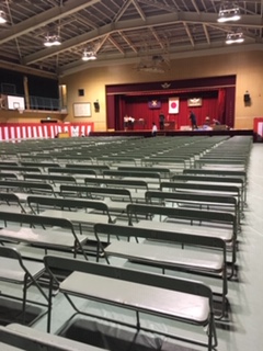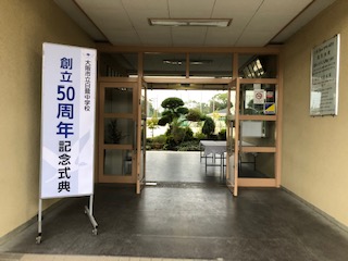 白鷺中学校の50年目の節目のために、イスも縦横ビシッとそろえて、心を込めて準備しました。