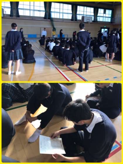 黄色団、今朝の朝の集会では、人間ビンゴをしました。