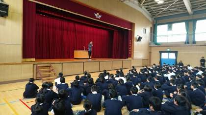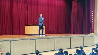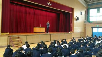 森脇健児さんのお話です。ご自分の体験を通してやり続けることの大切さについてのお話です。生徒たちの今後の活動にいきるいいお話が聞けたように思います。
