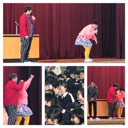 三年間、ずっと関わってくださったチキチキジョニーさんは漫才を披露してくださり、笑育についての感想をお話しいただきました。