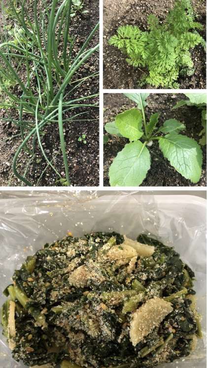 にんじん、九条ネギ、かぶらと冬野菜が続々と育っています。今日は飼育園芸部員のおばあ様が作られた、大根と葉の和え物を差し入れしていただき、教員で美味しくいただきました。真心に感謝します、ありがとうございました。
