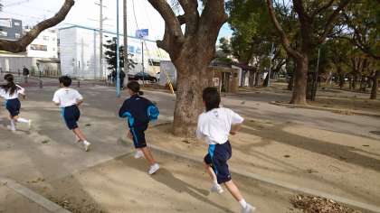 女子がアップに行きました。もうすぐ女子のスタートです。