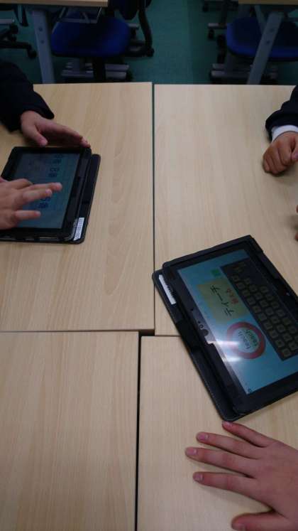 後半はタブレット端末を使用して、「カンザソフト教材集」にある英語ソフトで学習しました。
