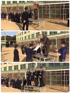 今朝の全校集会では、キャリア文科大臣表彰、女子バスケ部表彰、今日から学校に来てくれるインターンシップ生の紹介をしました。