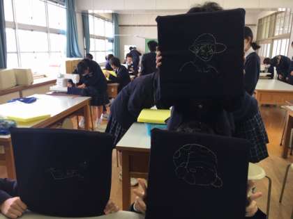 座布団カバーが完成しました。自分の好きなデザインをなみ縫いをしました。3年生家庭科の授業は終わりましたが、これからの生活で少しでも学んだ事をいかしてもらいたいです。