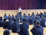 3学期初めの学年集会は佐藤先生からお話しを聞きました。 佐藤先生のお話しの始...