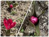 元気アップ隊が植えたチューリップの花が3年生の卒業をお祝いしたくて土から...