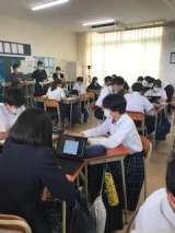 今日、3年生社会科公民の授業で、学校実習生(大阪教育大学大学院生)が時事問題に関...