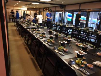 6時40分 食事係が、朝食の準備を手伝い始めています。