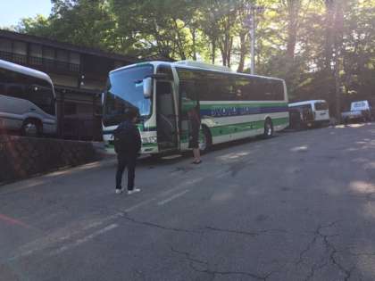 予定通り、ラフティング体験に向け、宿舎を出発しました。