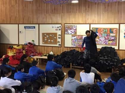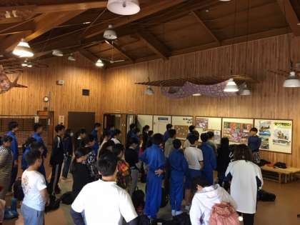 ラフティング体験の注意点の説明がありました。これから、着替えて準備します。