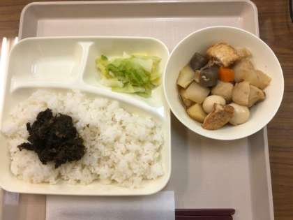 関東煮 あっさりキャベツ のりのつくだ煮 ごはん 牛乳