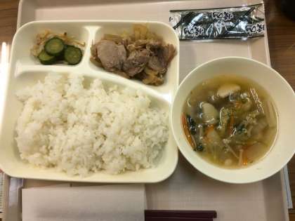 焼肉 五目汁 きゅうりともやしのおひたし 焼きのり ごはん 牛乳