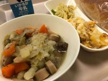今日のメインはポトフです。お腹の中からあったまります。デザートの桃のクラフティは桃の甘酸っぱさとクリームの甘さがよくマッチした一品です。
