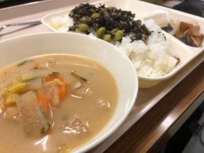 栄養たっぷりえだまめひじきごはん、さけのさわやかレモン焼き、冬野菜のみそ汁。形容詞が多い献立ですが、その名の通り、栄養たっぷりの美味しい給食でした。