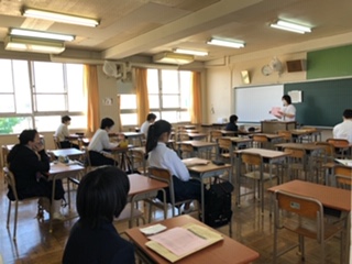 今日は2年生の登校日でした。感染症拡大予防のため、3つの教室に分かれました。