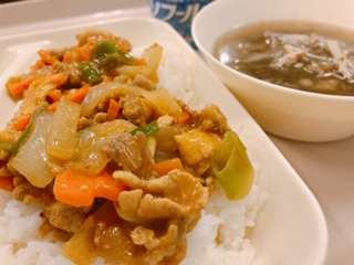 和風カレー丼、もずくとオクラのとろり汁、ヨーグルト、牛乳
