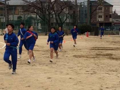 2月2日午後から、1・2年生は駅伝大会を実施しました。曇り空で寒い中、一人ひとりが一生懸命走りました。中には、欠席者の関係で2回走った人もいますが、みんな真剣な表情で臨んでいました。