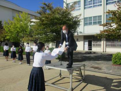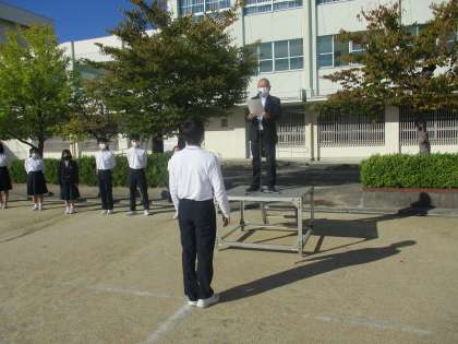 全校集会では、ラグビー部と総合文化祭出品の表彰がありました。