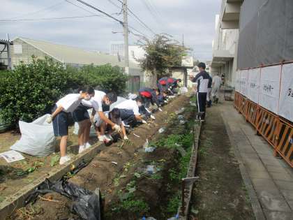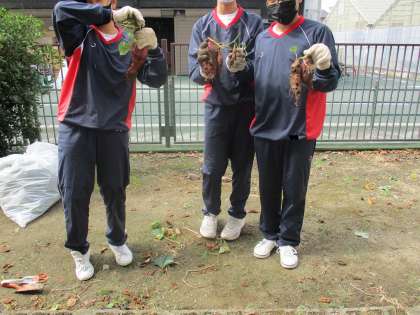 2年生が春につるを植えたさつまいもの収穫をしました。
