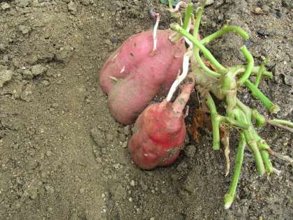 大小さまざまな形のさつまいもが収穫でき、周りのものと見比べていました。