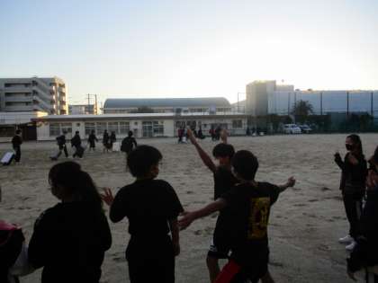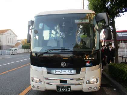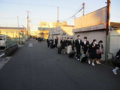 3年生は荷物を手に学校を後にして、バスへ向かいました。