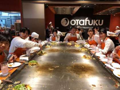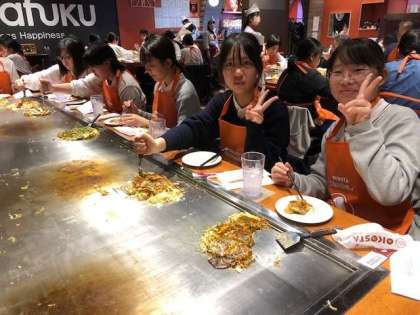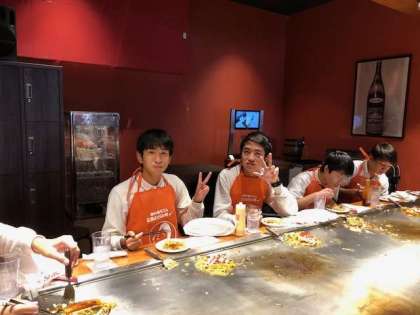 自分で作った広島お好み焼きをおいしくいただきました。