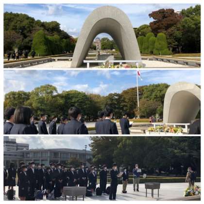 原爆死没者慰霊碑の前で黙祷をし、自分たちで作った平和の誓いを行いました。