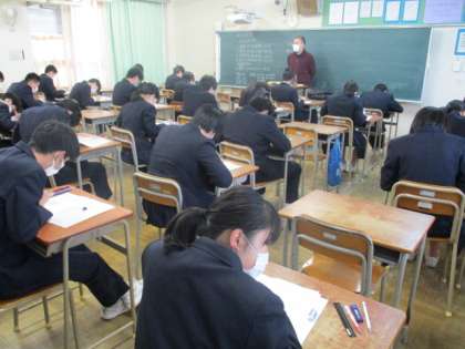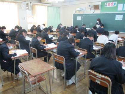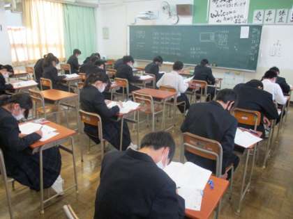 本日3年生は第5回実力テスト、1・2年生はチャレンジテストです。生徒たちは一生懸命問題に取り組んでいます。
