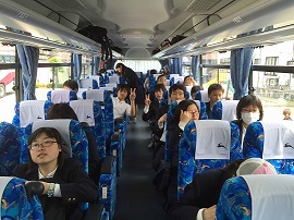 台風の影響もなく、快晴のもと学校からバスで移動し、最初の目的地、滋賀県の彦根スカイアドベンチャーに向かいました。
