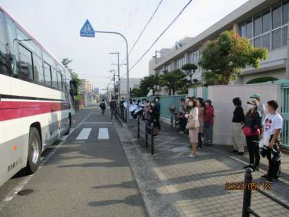 多くのご家族、1・2年生に見送られ、バスは一路四国方面へ向かいました。