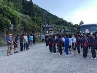 ラフティングが終わり、お世話になったインストラクターさんにお礼。これから一泊目の宿舎に向かいます。