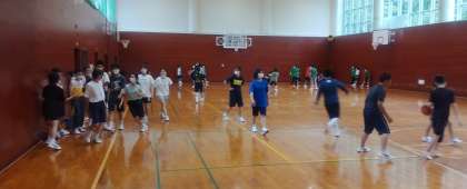 入浴まで少し時間があるので、みんなで体育館で遊んでいます。