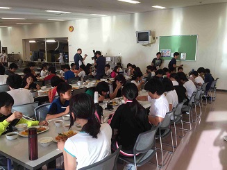 海での活動を終え、入浴をすませ、少し早目の夕食です。食堂に集まり、みんなでおいしくいただきました。