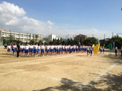 9月25日6限目に2回目の全体練習を行いました。入場行進の練習に始まり、開会式の流れの確認、ラジオ体操の練習、退場練習、綱引きの隊形確認、閉会式の流れの確認、校歌の練習と非常に多彩な内容でした。暑い中でしたが、生徒たちは、一生懸命練習に取り組んでいました。