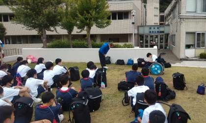 お世話になる宿舎のかたに生徒代表挨拶です。