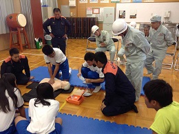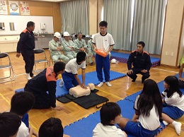 心臓模型や人体模型を使用した心肺蘇生(胸骨圧迫)とAED使い方を教えていただきました。消防署の方々忙しい中ありがとうございました。