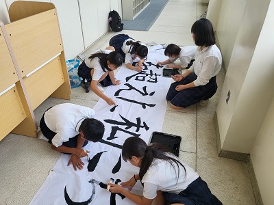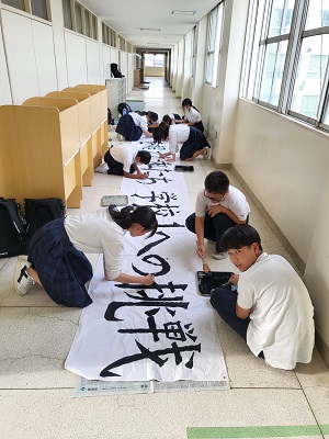 生徒会では、来る体育大会・文化祭に向けて、テーマを入れた垂れ幕を作成しています。
