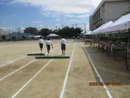 係生徒の活躍で体育大会準備を行いました。