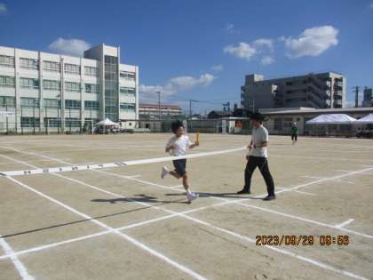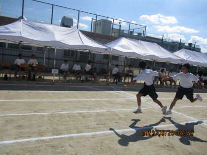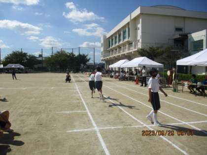 1年学年種目「全員リレー」です。