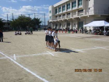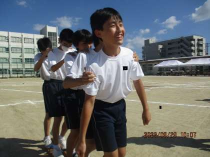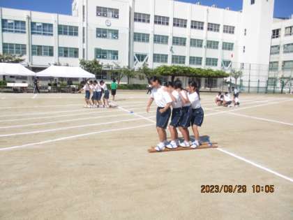 2年学年種目「ムカデ競争」です