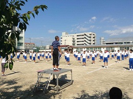 6限に第1回目の体育大会全体練習を実施しました。体育大会の意義付けや入場行進・開閉会式・全校体操について練習しました。暑い中でしたが、みんなよく頑張りました。