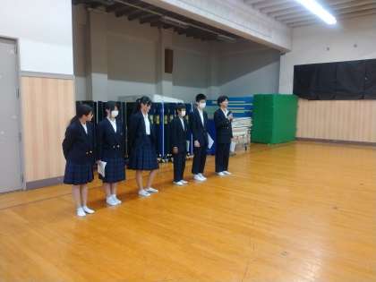 前期の役員・委員のみなさんお疲れさまでした。後期の役員・委員のみなさんには、これから生徒会の中心となって活躍してくれることを期待しています。