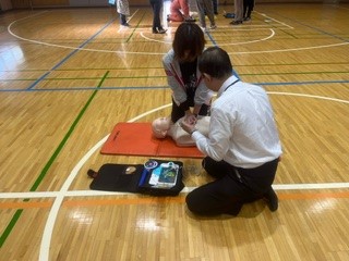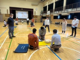 本日、消防隊員・救急隊員の方々をお招きし、教職員対象に救命救急講習が実施されました。校長先生をはじめ、たくさんの教職員が受講しました。