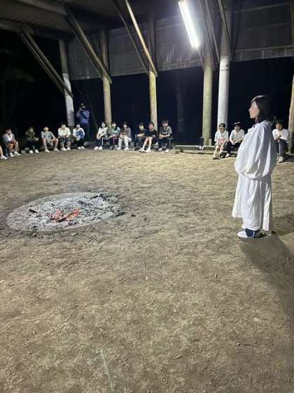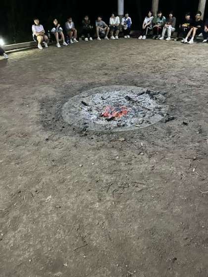盛り上がり燃え上がった、キャンプファイヤーも終了です。