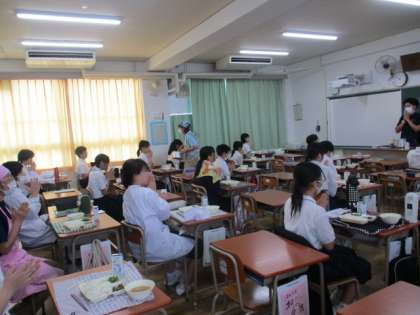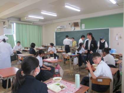 皆さん、配膳準備早いですね。協力しあってスムーズで感心しました。「いただきます」もしっかりできていました!