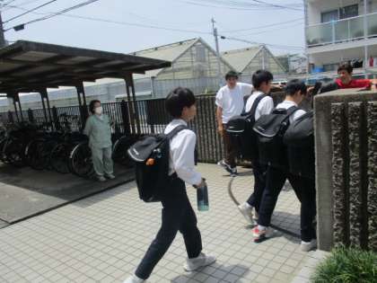 今日は期末テスト1日目でした。下校指導の先生方に声をかけられ、「できました!」「まあまあでした」といろいろな返事が返ってきましたが、皆さん、笑顔で「さようなら」のあいさつをしてくれました。どんな時も笑顔のあいさつは気持ちのよいものです。テストあと2日、最後まで頑張りましょう!