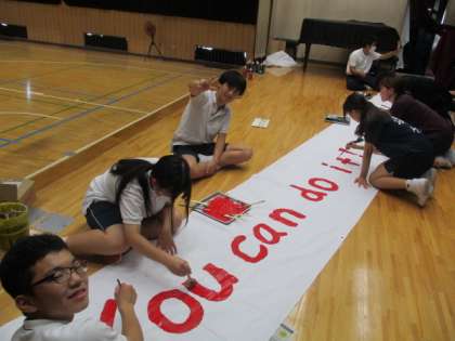 昨日、体育大会・文化祭のテーマ横断幕を生徒会が作成している様子です。