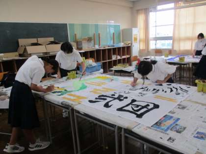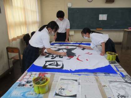 体育大会の団旗作成中です。今の時点で凄い迫力です!完成が楽しみです!!